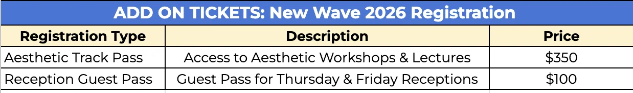 Forgot to register for an aesthetic pass or guest reception ticket? Get them HERE!